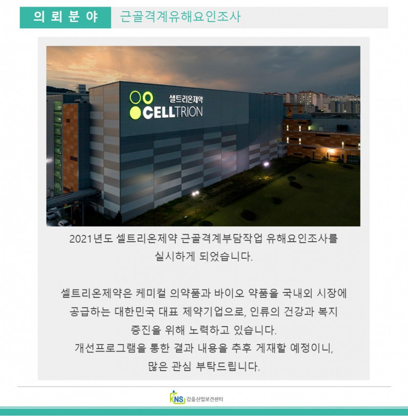 근골격계유해요인조사] 셀트리온제약 > 연구용역