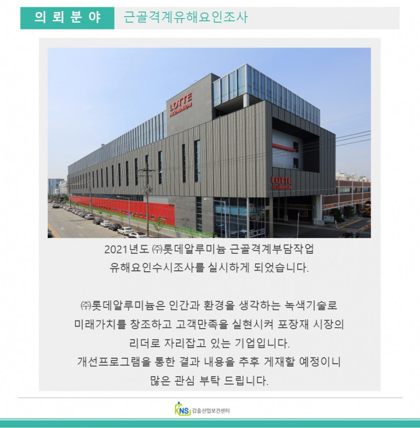 근골격계유해요인조사] (주)롯데알루미늄 > 연구용역