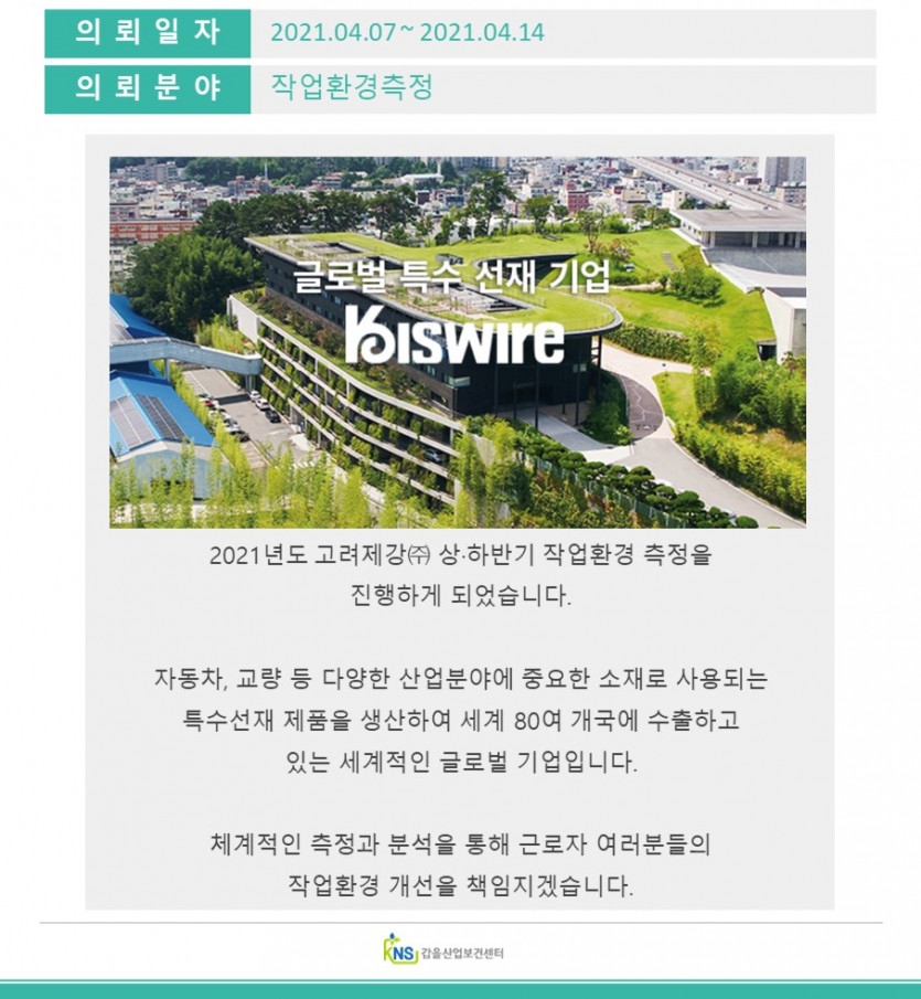 작업환경측정] (주)고려제강 > 연구용역
