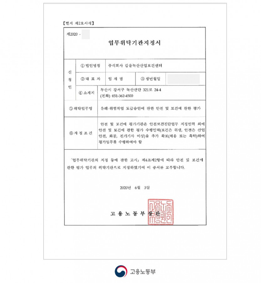 본사는 2020년 6월 3일자로 도급승인  지정 평가 기관으로 지정 받았습니다.